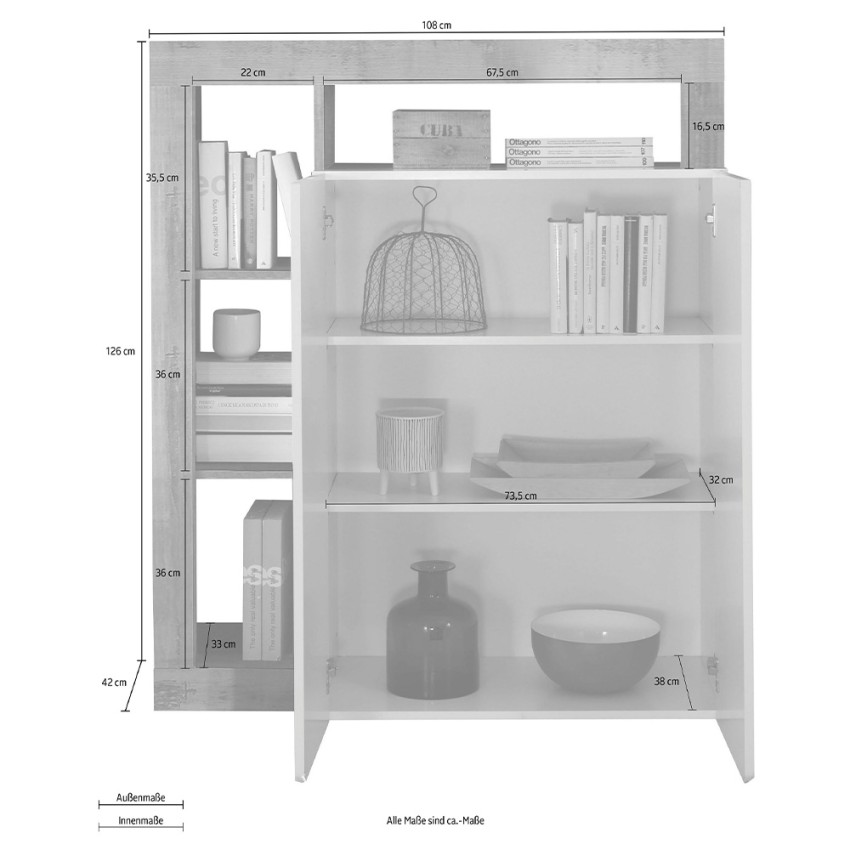 - Buffet haut avec 2 portes battantes, 3 grands compartiments et espaces ouverts